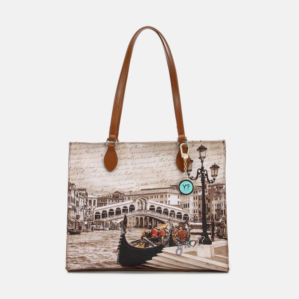 Ynot? Borsa Shopping Medium Yes Bag Stampa Città